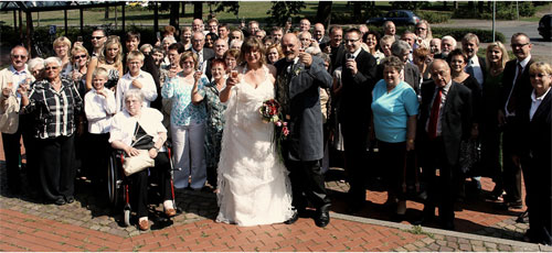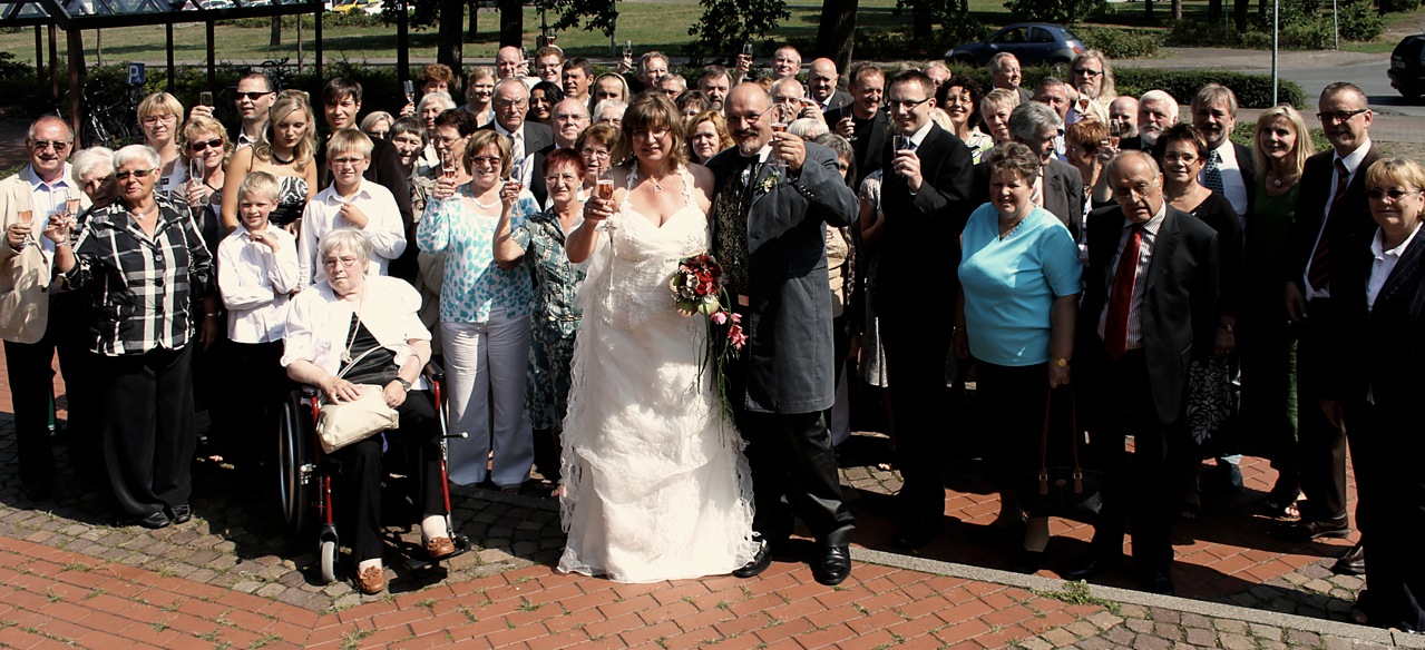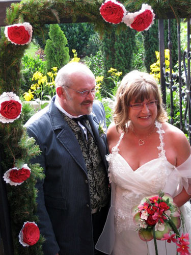 Liane und ich sind fast erschlagen von all den netten Worten guten Wünschen und schönen Geschenken. Man weiß ja kaum noch, wo man überall zuerst hinhören und hinsehen soll, damit nach Möglichkeit auch ja nichts an Eindrücken von diesem schönen Tag verloren geht. Alles überstürzt sich ein wenig, und hinzu kommen die Aufregung und Nervosität, weil man ja schließlich nicht alle Tage heiratet.