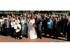 Hier ist eines der Gruppenfotos vor dem Standesamt mit allen Gästen: